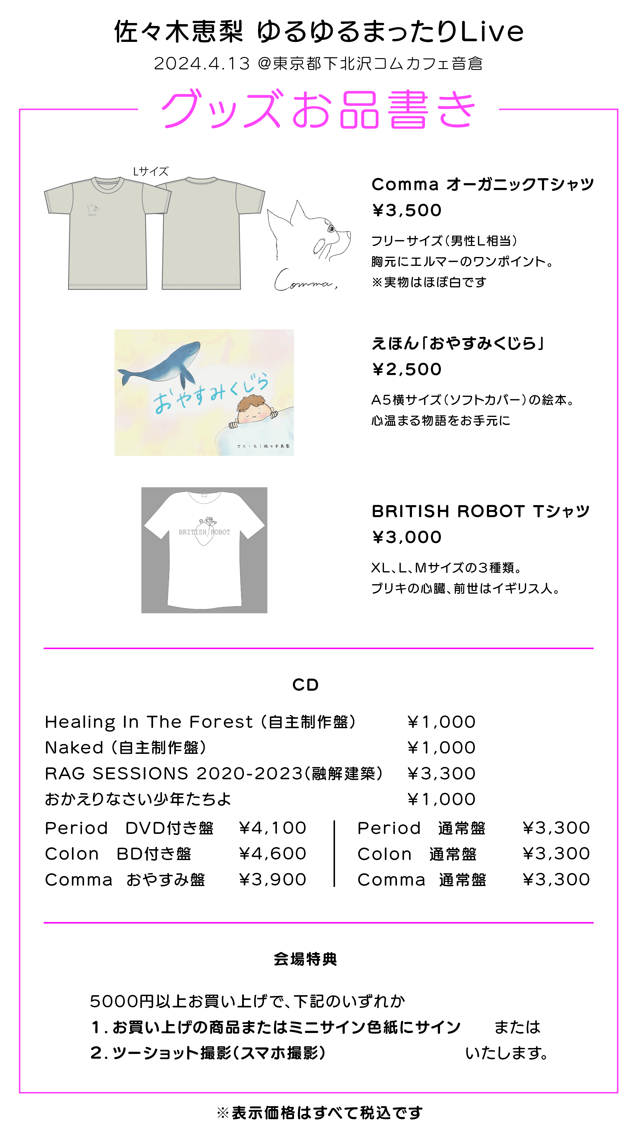 ※ 物販は終演後(21:00予定)のみとなります。