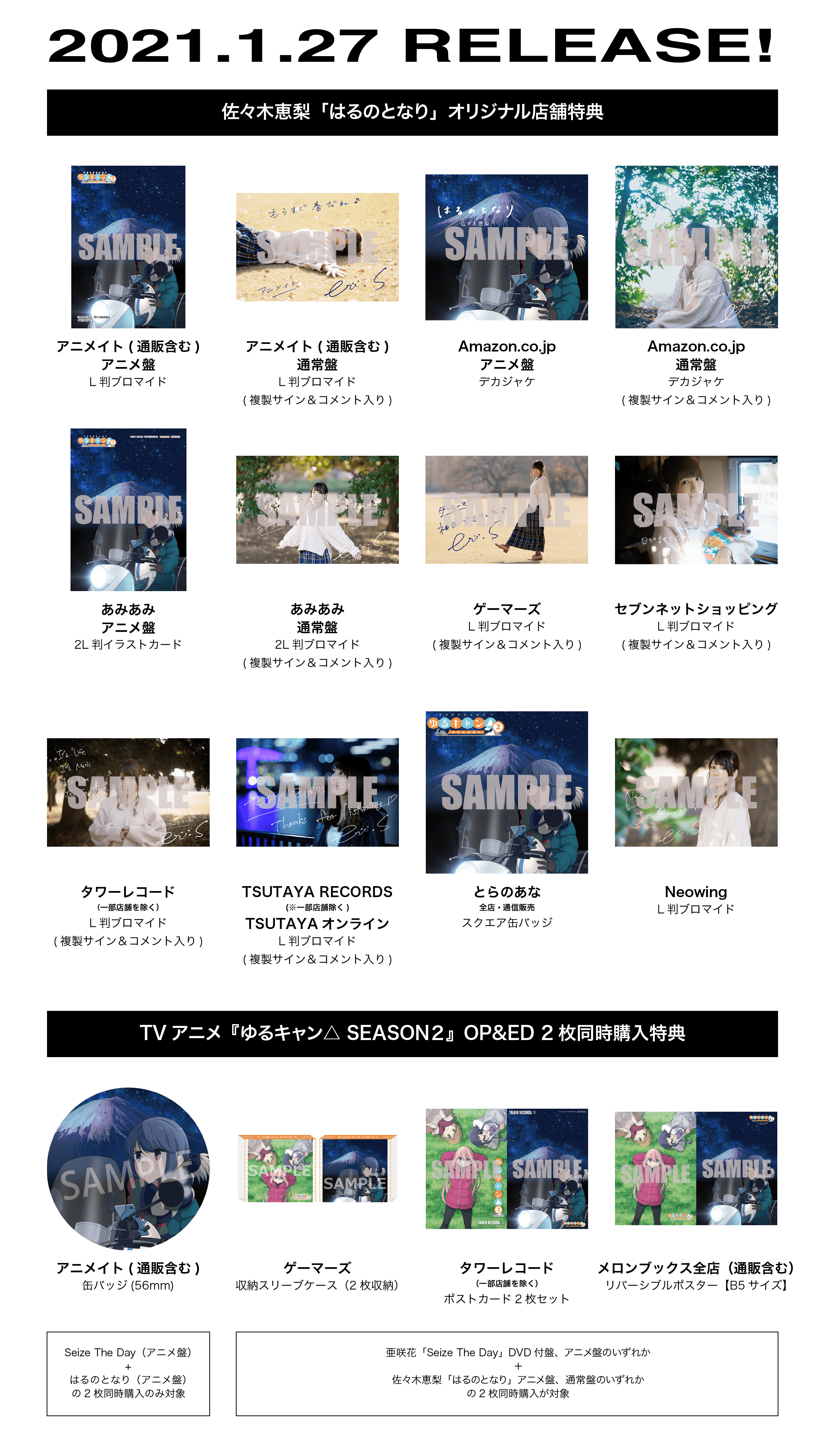 【対象商品】亜咲花「Seize The Day」DVD付盤、アニメ盤のいずれか+佐々木恵梨「はるのとなり」アニメ盤、通常盤のいずれかの2枚同時購入