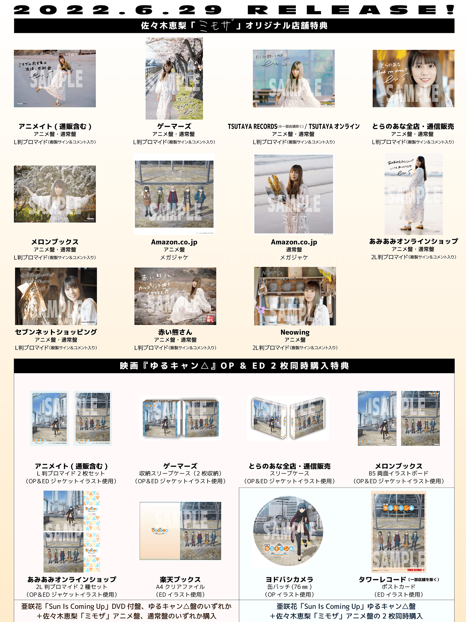 <亜咲花「Sun Is Coming Up」ゆるキャン△盤+佐々木恵梨「ミモザ」アニメ盤の2枚同時購入>