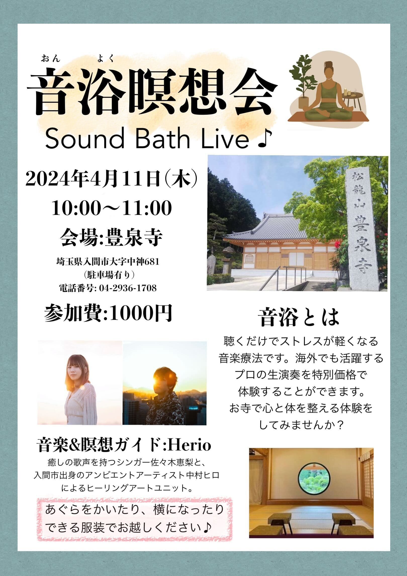4/18(木) 20:00〜 音浴(サウンドバス)&ミニアコースティックライブ